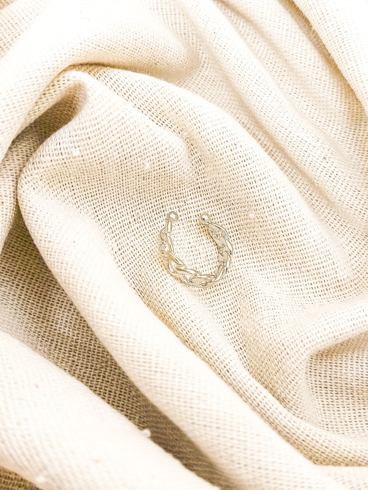 Piercing em banho de ródio branco, de encaixe, aro em malha grumet 4mm. Tamanho: 1,5cm de diâmetro.