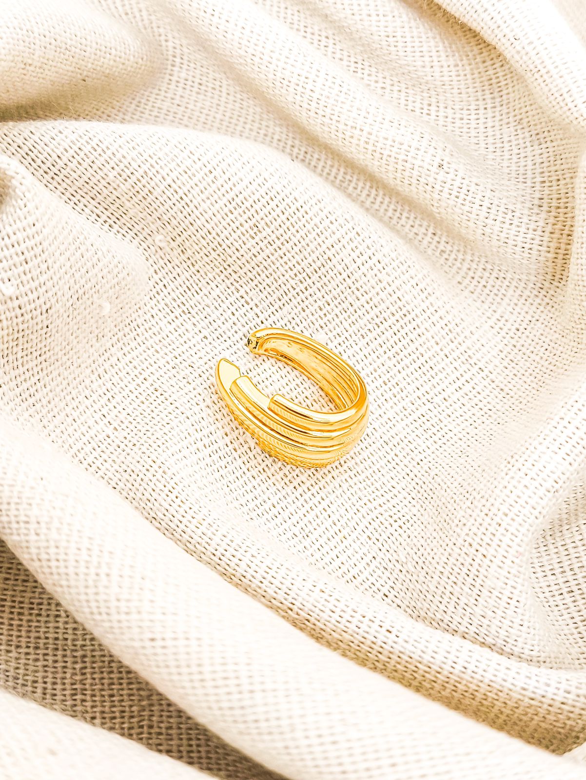Piercing em banho de ouro 18k, liso texturizado liso, com acabamento de alturas diferentes.