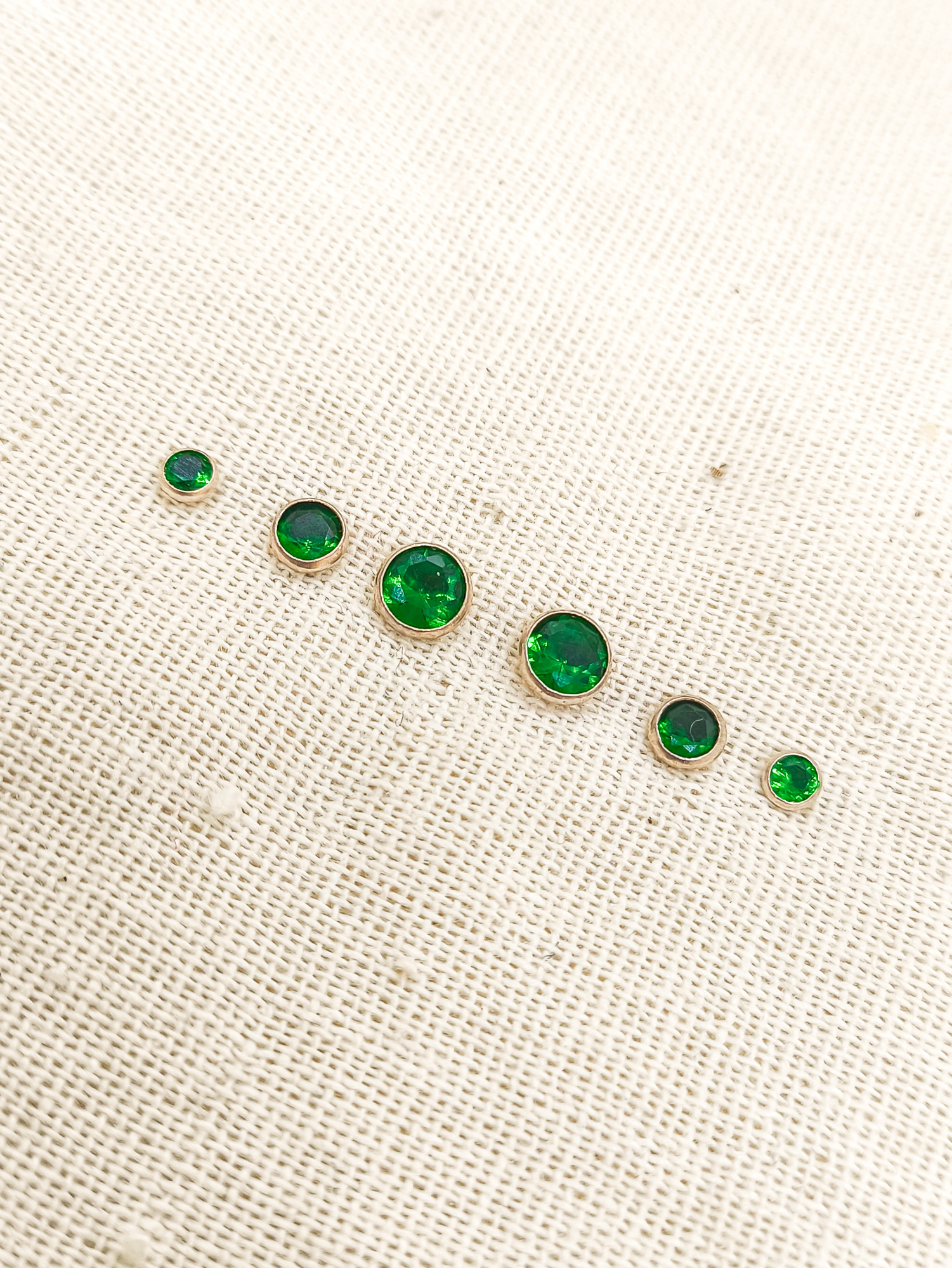 Trio de brincos em prata 925, pontos de luz de zircônia cor verde esmeralda. Tamanho: 4mm, 3mm, 2mm.