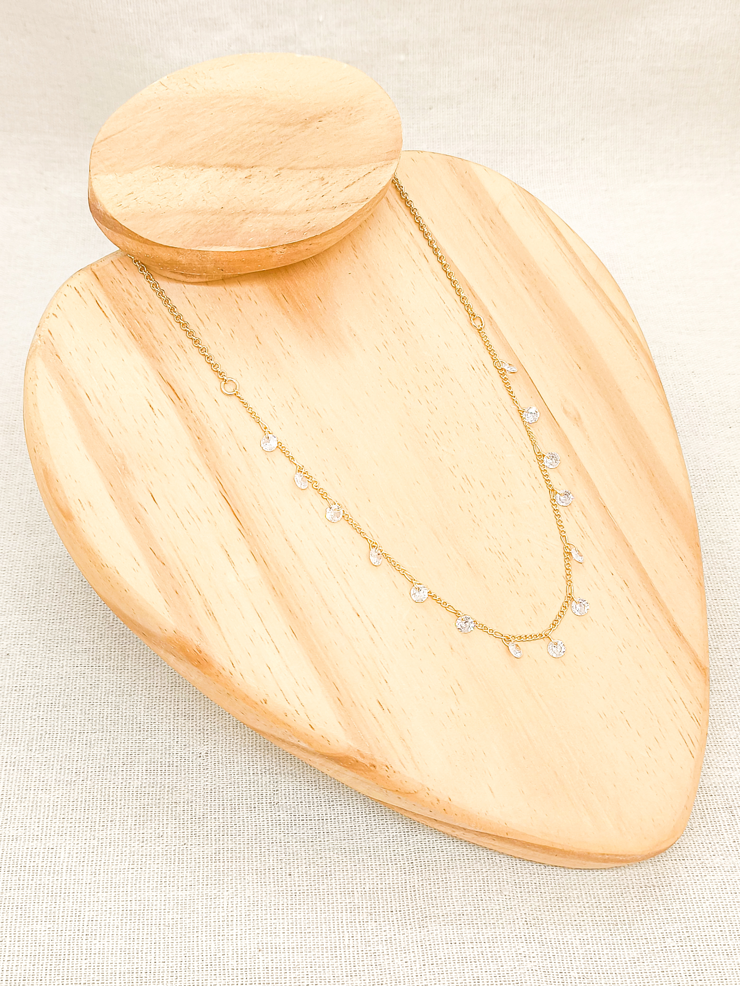 Corrente em banho de ouro 18k, malha 6 por 1, com 14 pontos de luz em zircônias brancas.