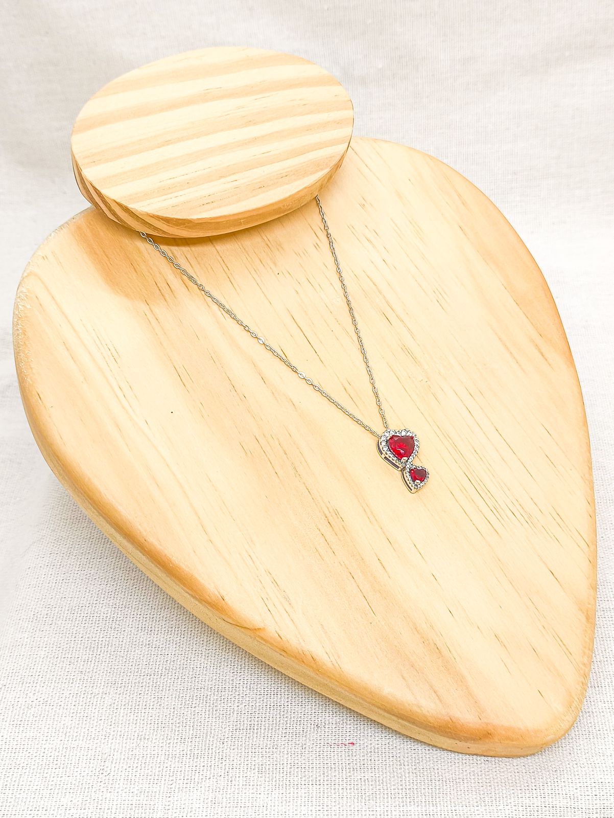 Corrente cadeado em prata 925 + banho de ródio com pingente de dois corações rubi.