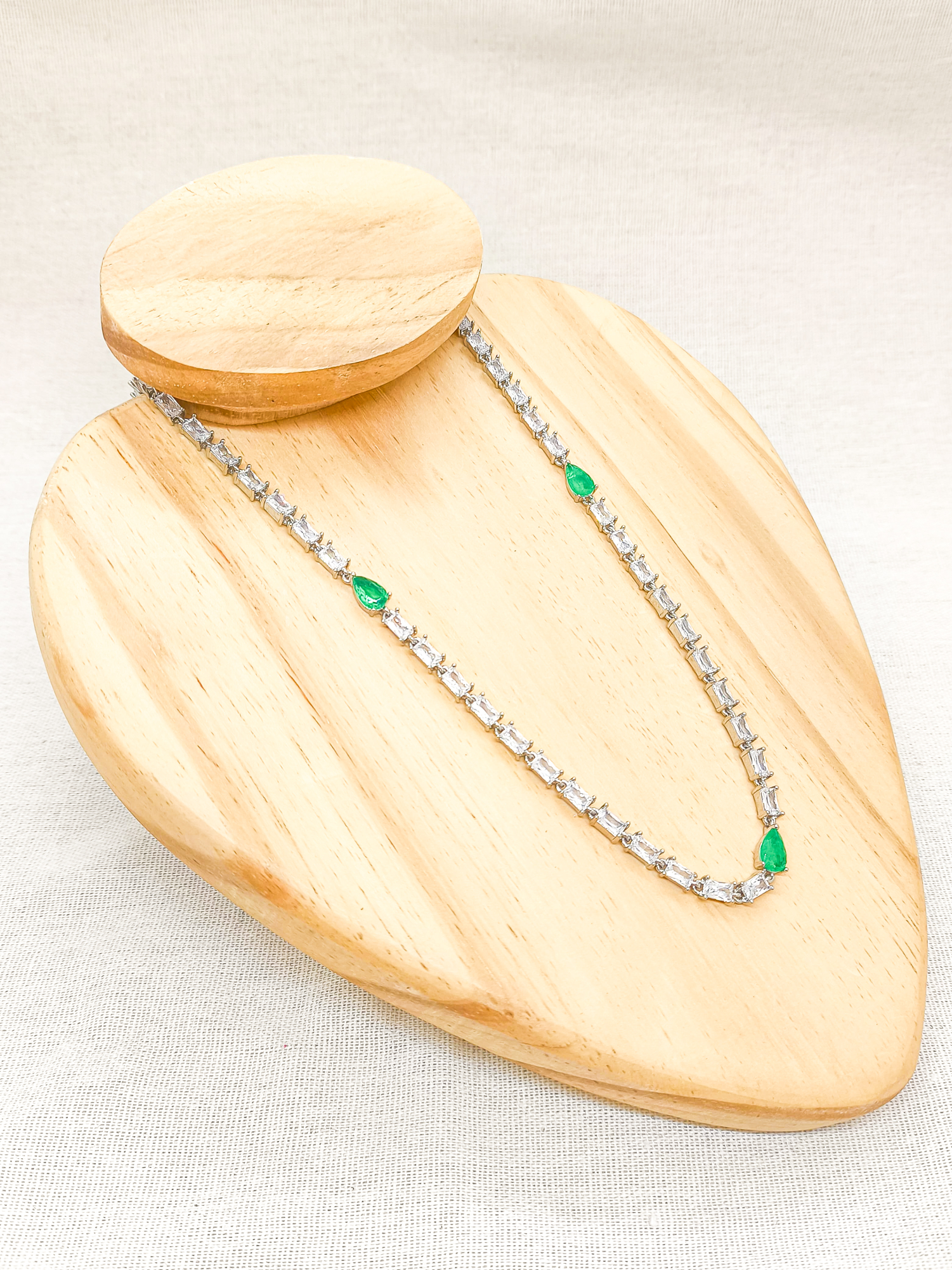 Corrente festa zircônia navete com gotas de esmeralda