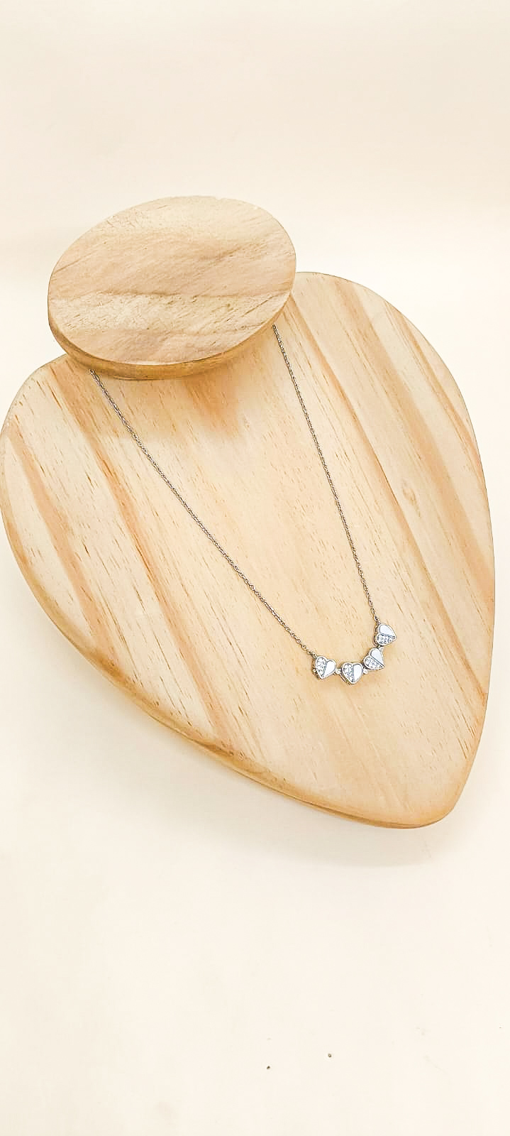 Corrente Prata 3 Corações em Madreperola + Cravejado