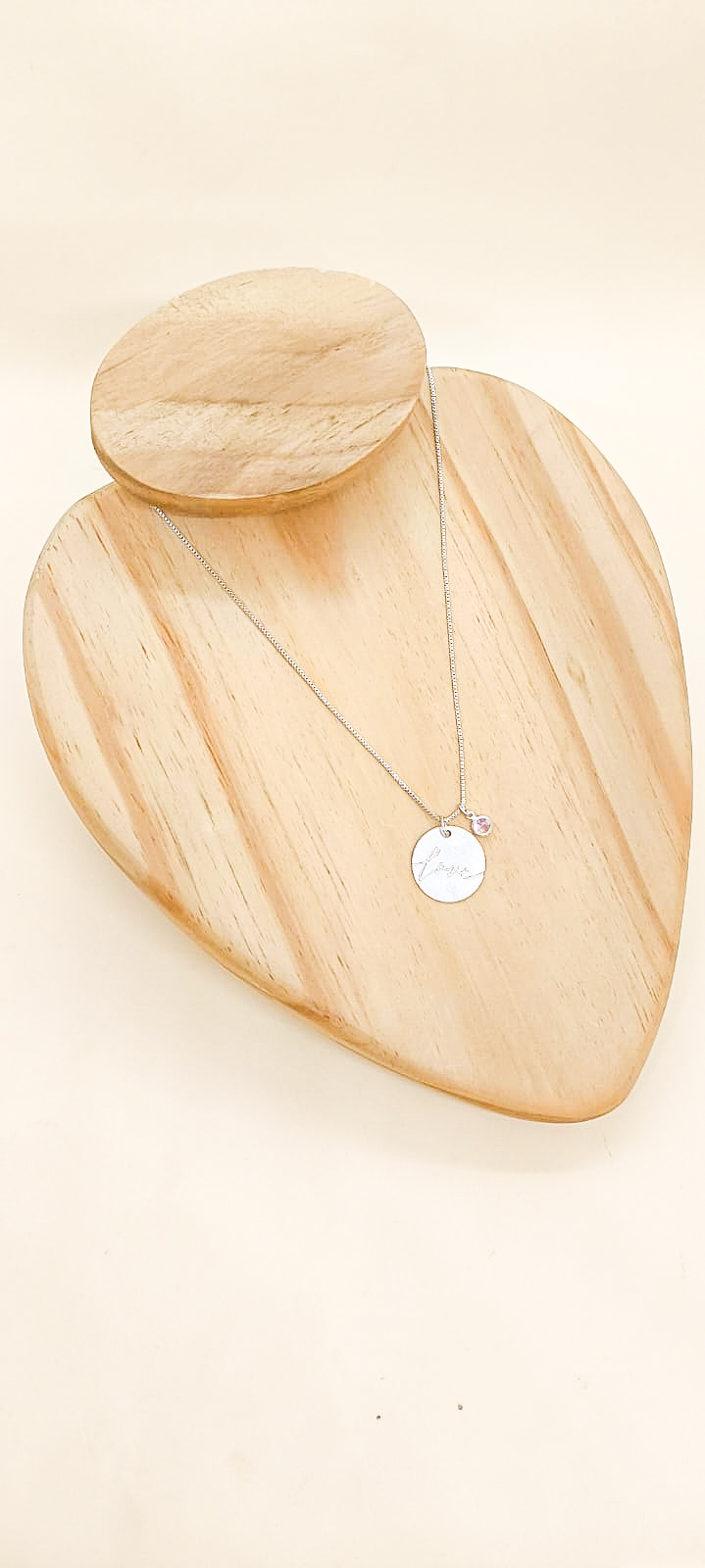 Corrente Prata leve com Placa Love e Ponto de Luz Rosa Chá