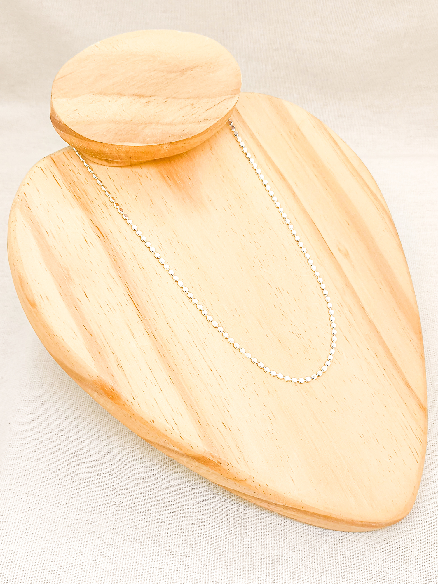 CORRENTE EM PRATA LEVE MALHA BOLINHA DIAMANTADA. Comprimento - 45cm + 5cm de extensor.