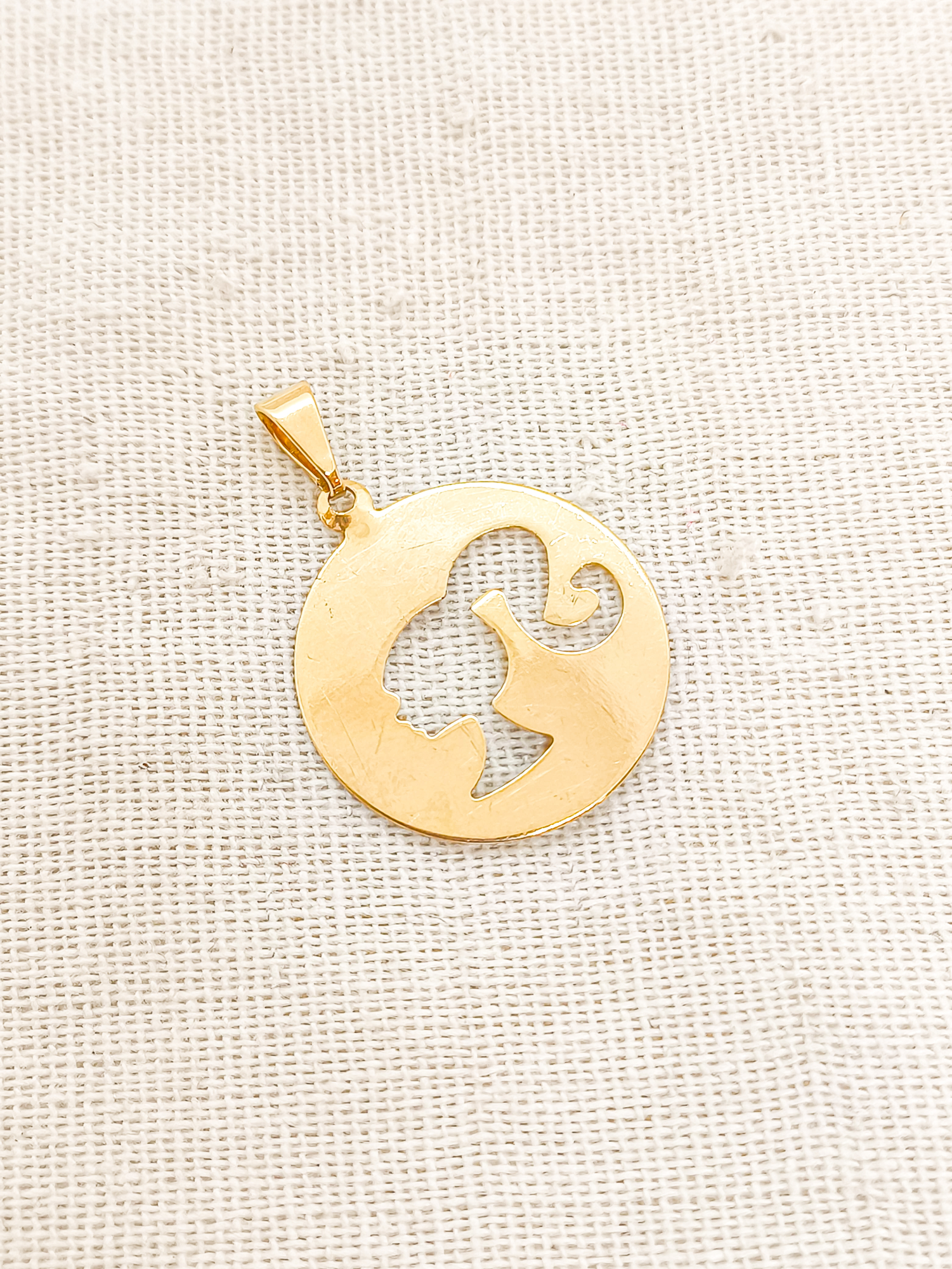 Corrente veneziana em banho de ouro 18k com pingente placa redonda Barbie vazada.