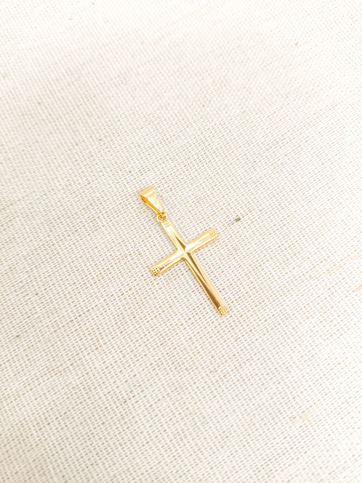 Pingente em banho de ouro 18k, cruz lisa, com centro diamantada.