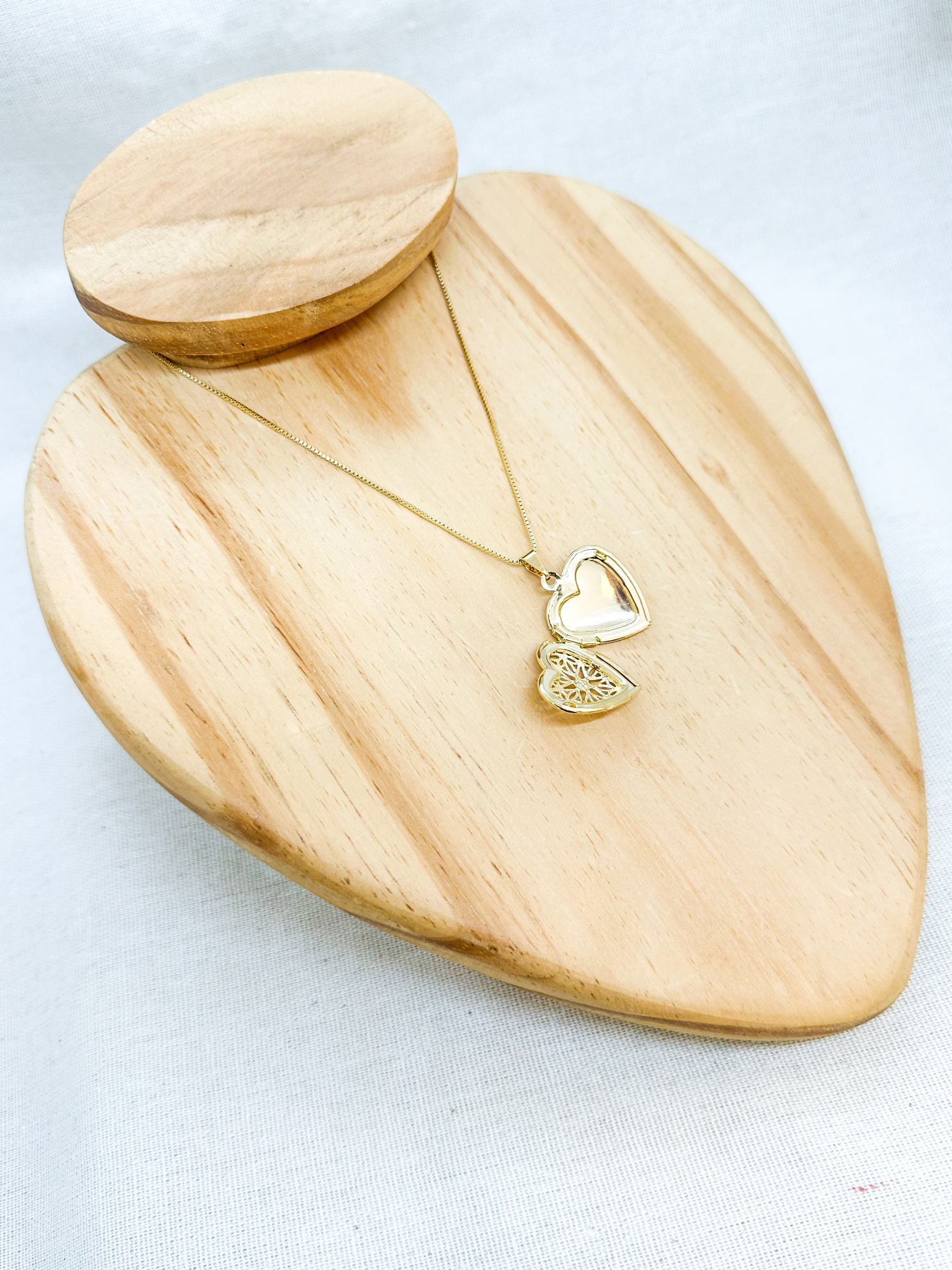 Pingente em banho de ouro 18k, relicário com frente ornamentada e vasada.