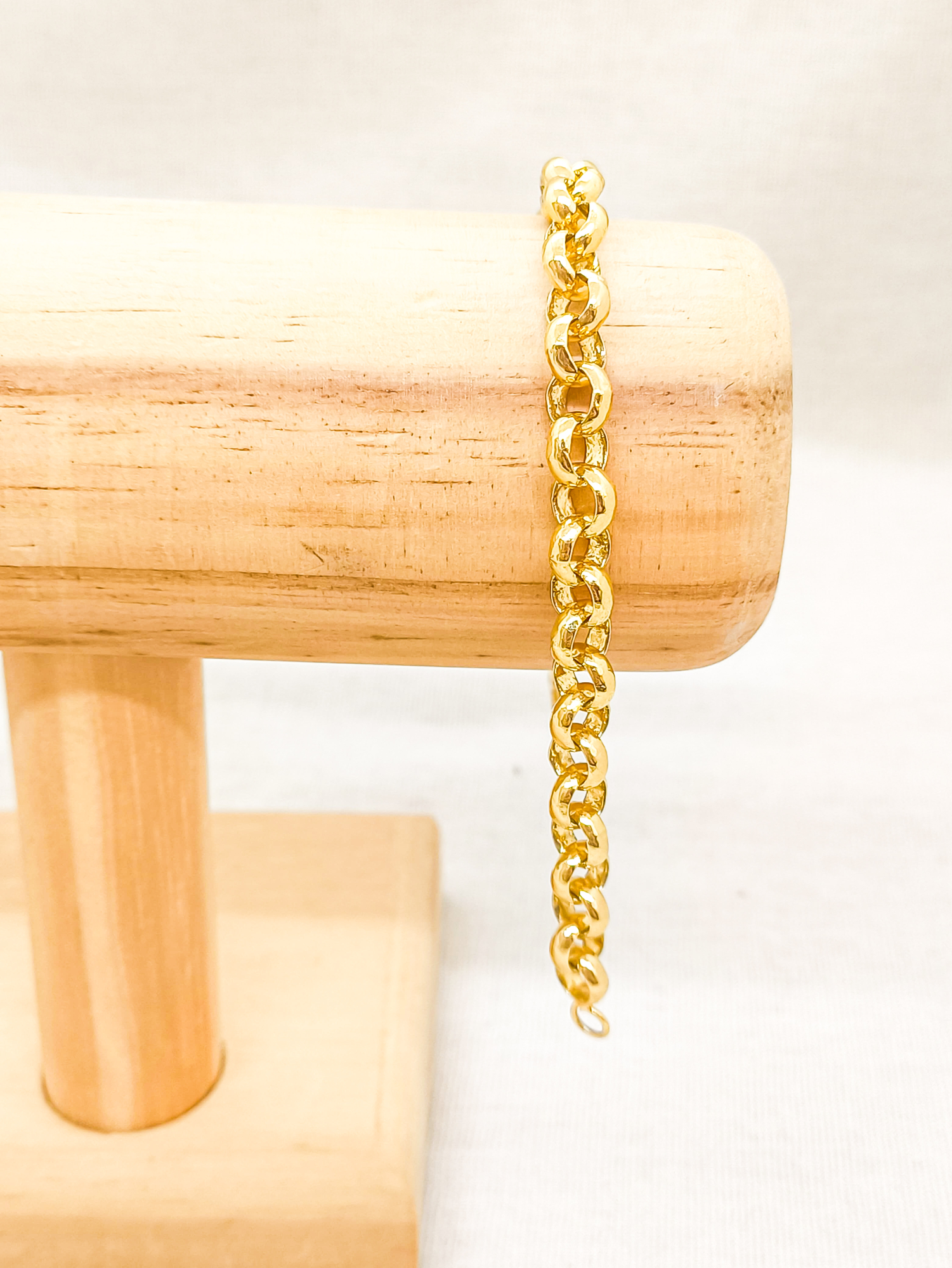 Pulseira clássica elo português em banho de ouro 18K / Prata Leve. Espessura Elos - 3mm. Comprimento - 19cm.