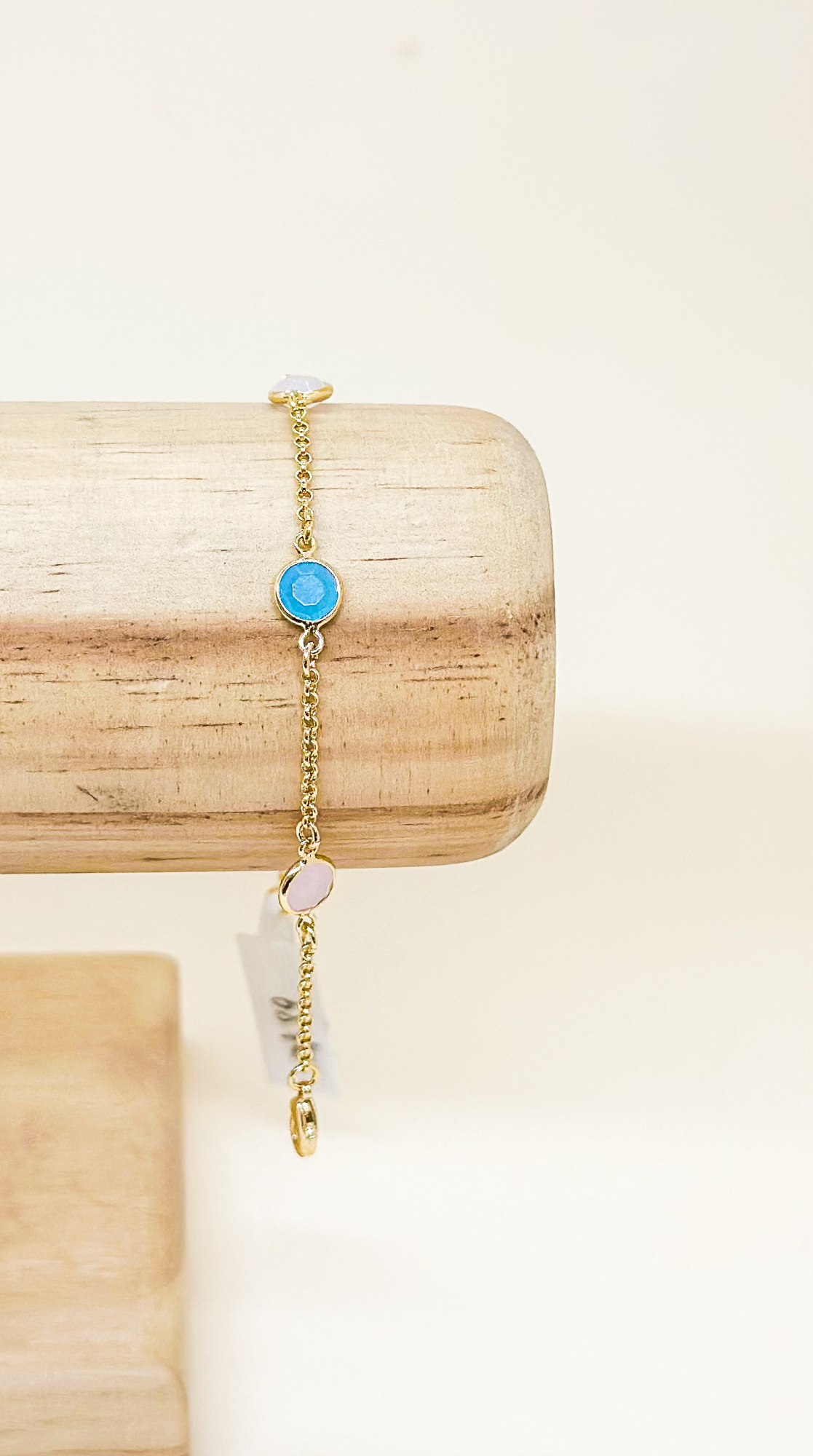 Pulseira cristais esféricos pasteis coloridos em banho de ouro