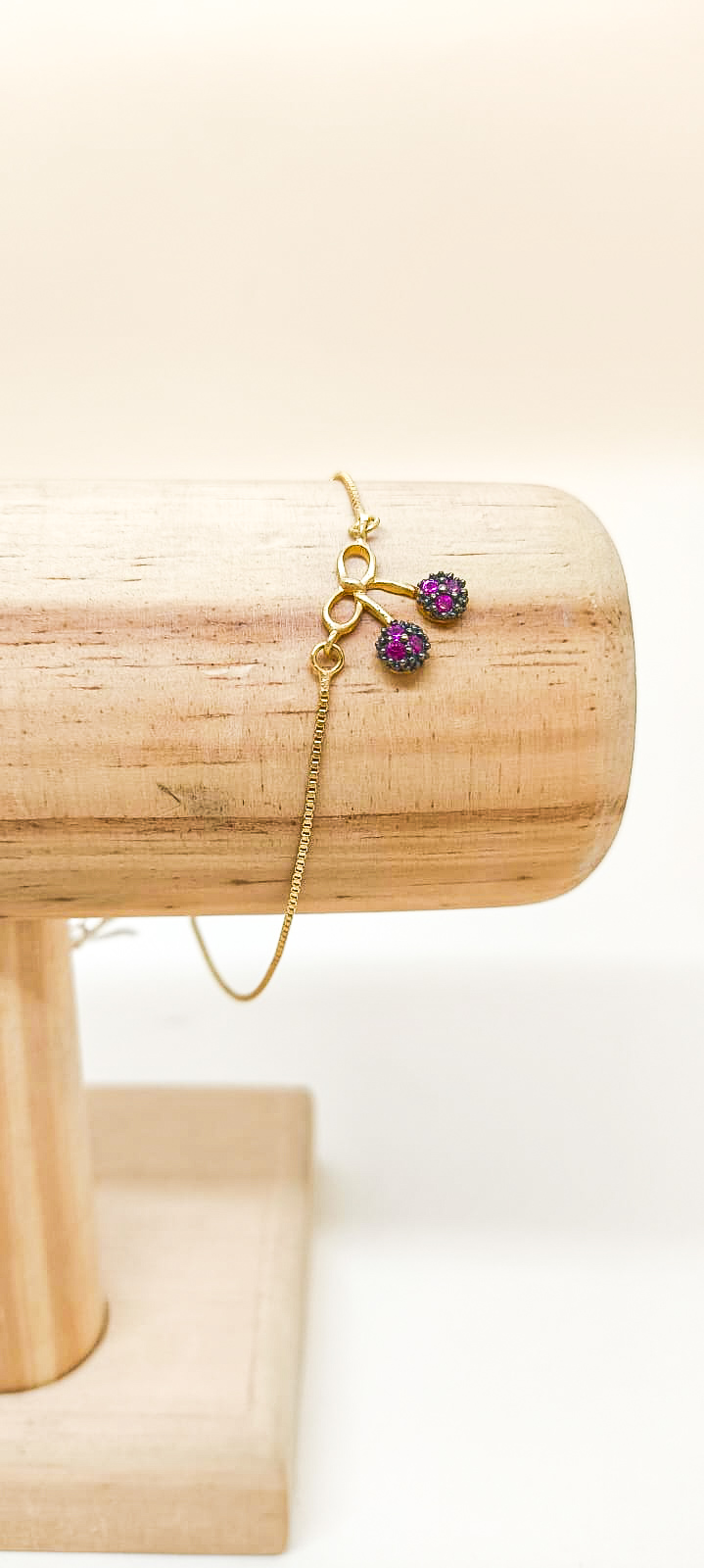 Página Inicial / Pulseiras / Pulseira Dourada com Pinjente de Cereja