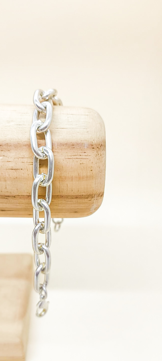 Pulseira em prata leve, com elos de correntes 7mm. Tamanho: 18cm com 1 cm.