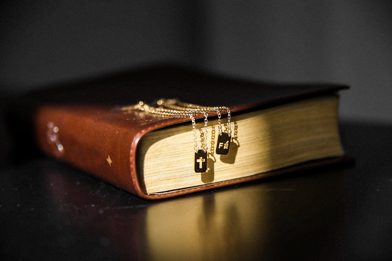 Pulseira em banho de ouro 18k, modelo escapulário em malha americana com pingente gravado fé e placa vazada de coração.