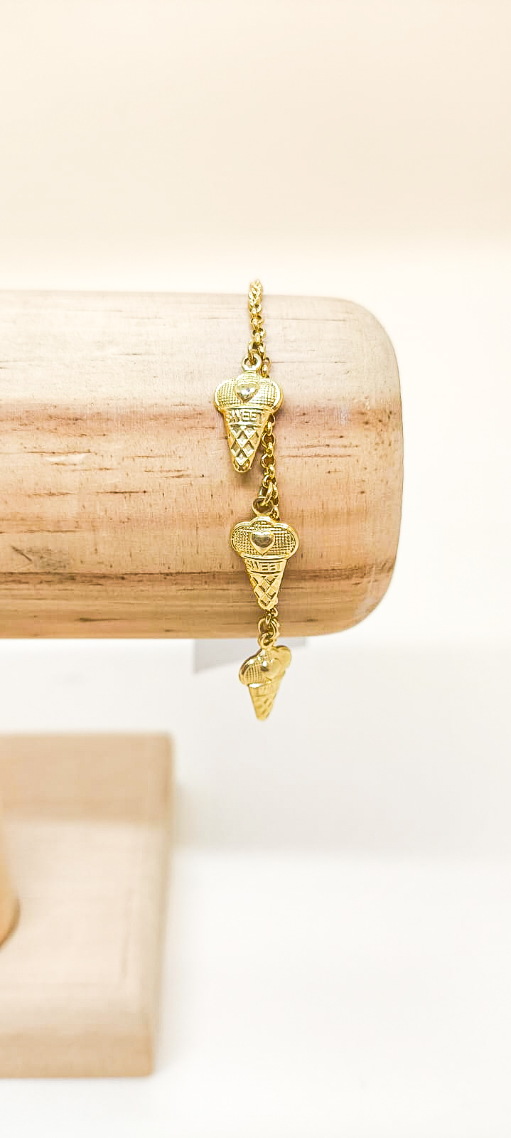 Pulseira em banho de ouro infantil com pingentes de sorvetes. Comprimento: 11cm + 4cm extensor.