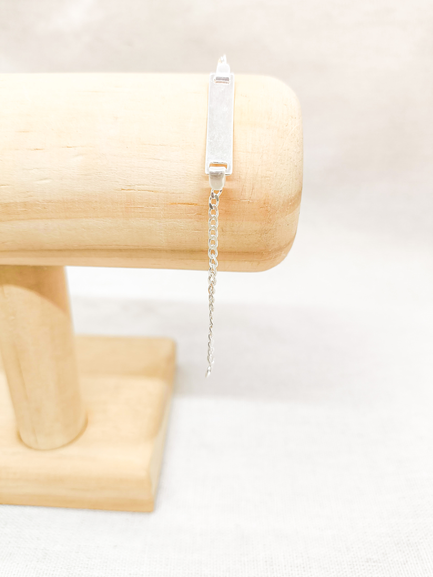 Pulseira em prata 925, malha grumet 3mm de largura, com placa reforçada para gravação. Comprimento: 13cm.