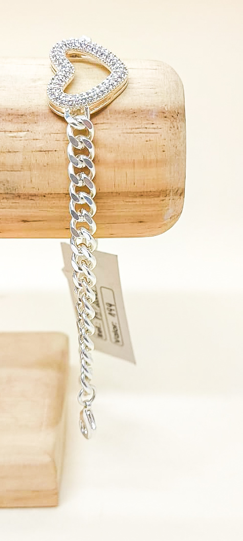 Página Inicial / Pulseiras / Pulseira Prata Coração Vazado Cravejado