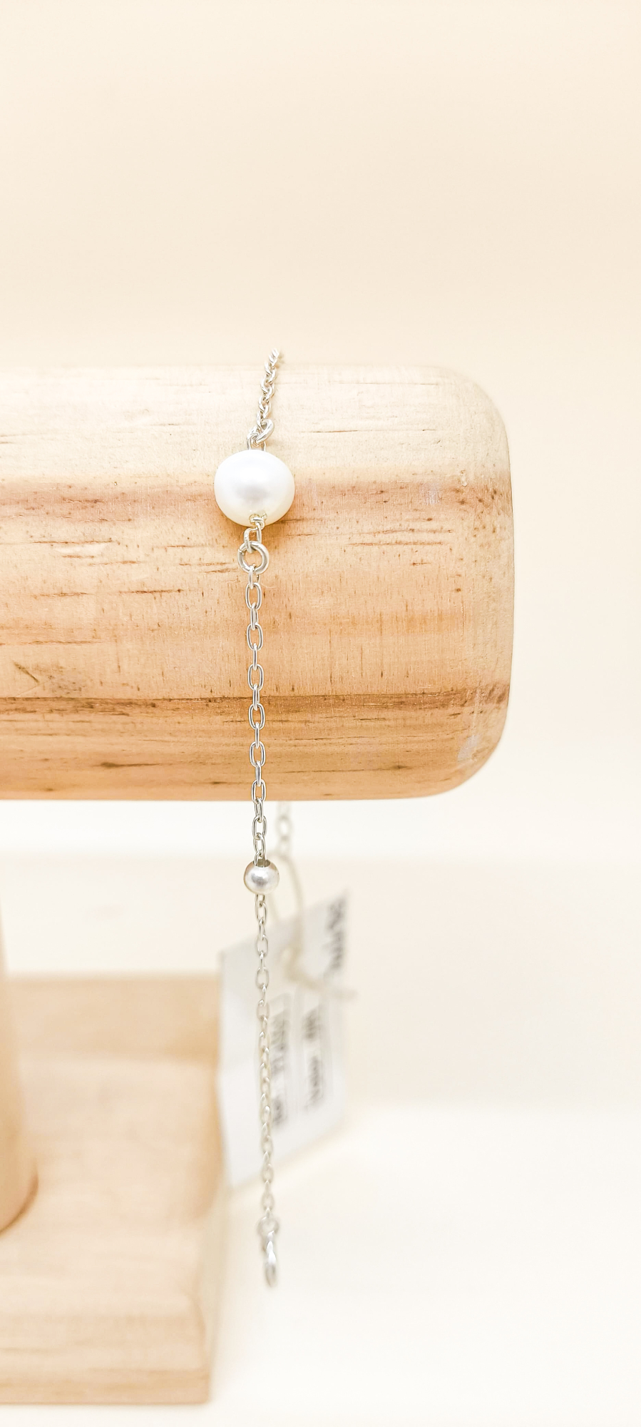 PULSEIRA PRATA 925 ELO AMERICANO COM 2 BOLAS E 1 PÉROLA CENTRAL.